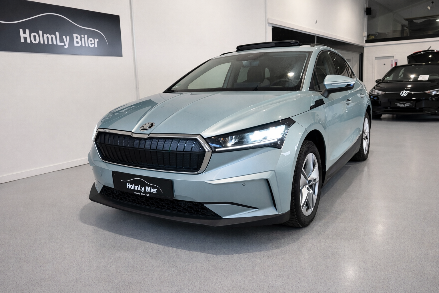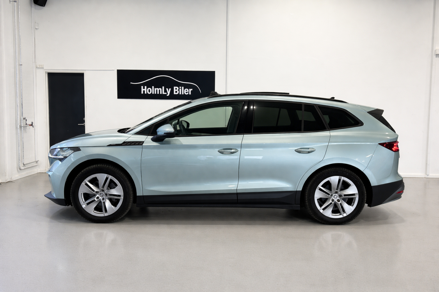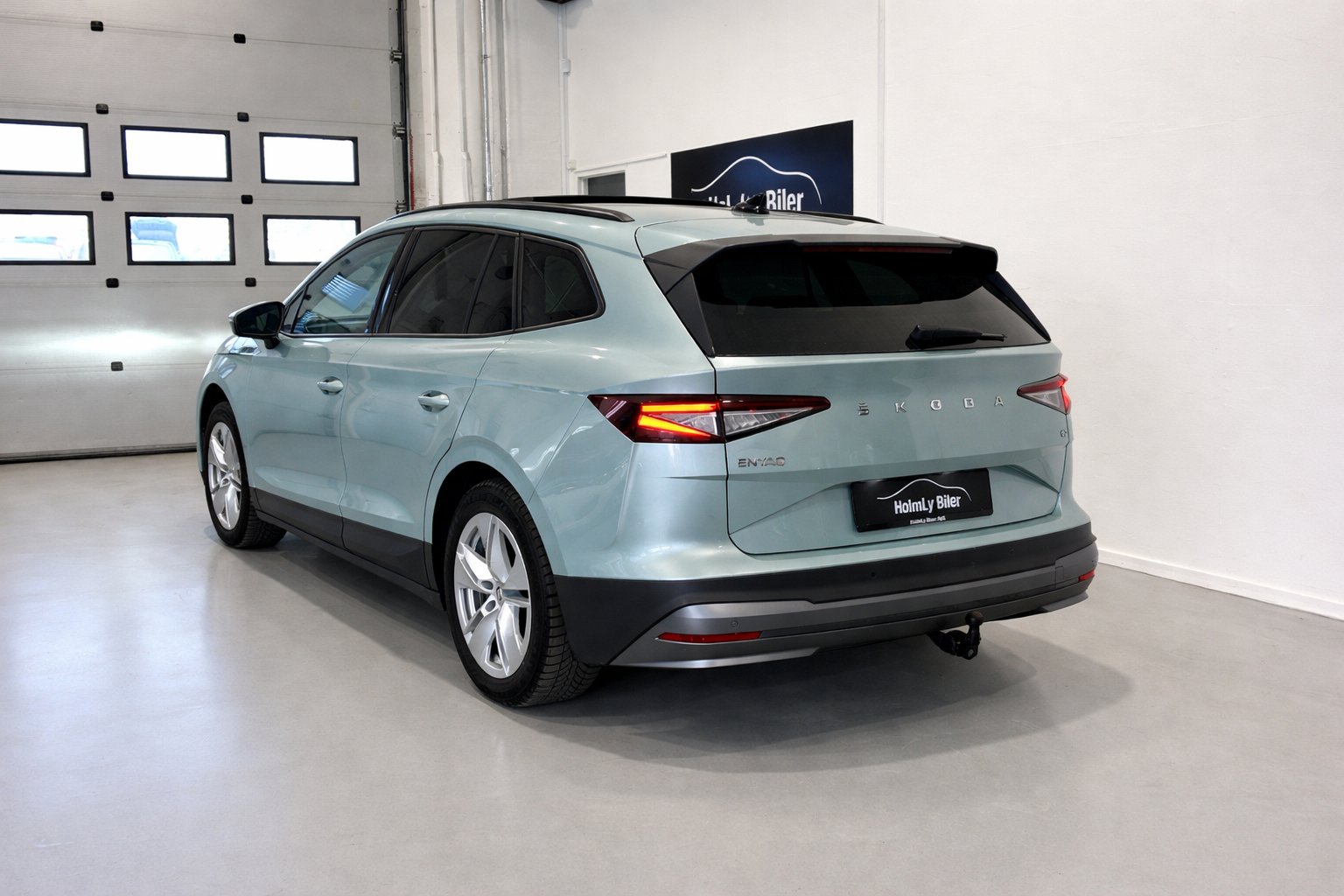 Meget meget fin Enyaq i den flotte Sølv/grønne metalfarve